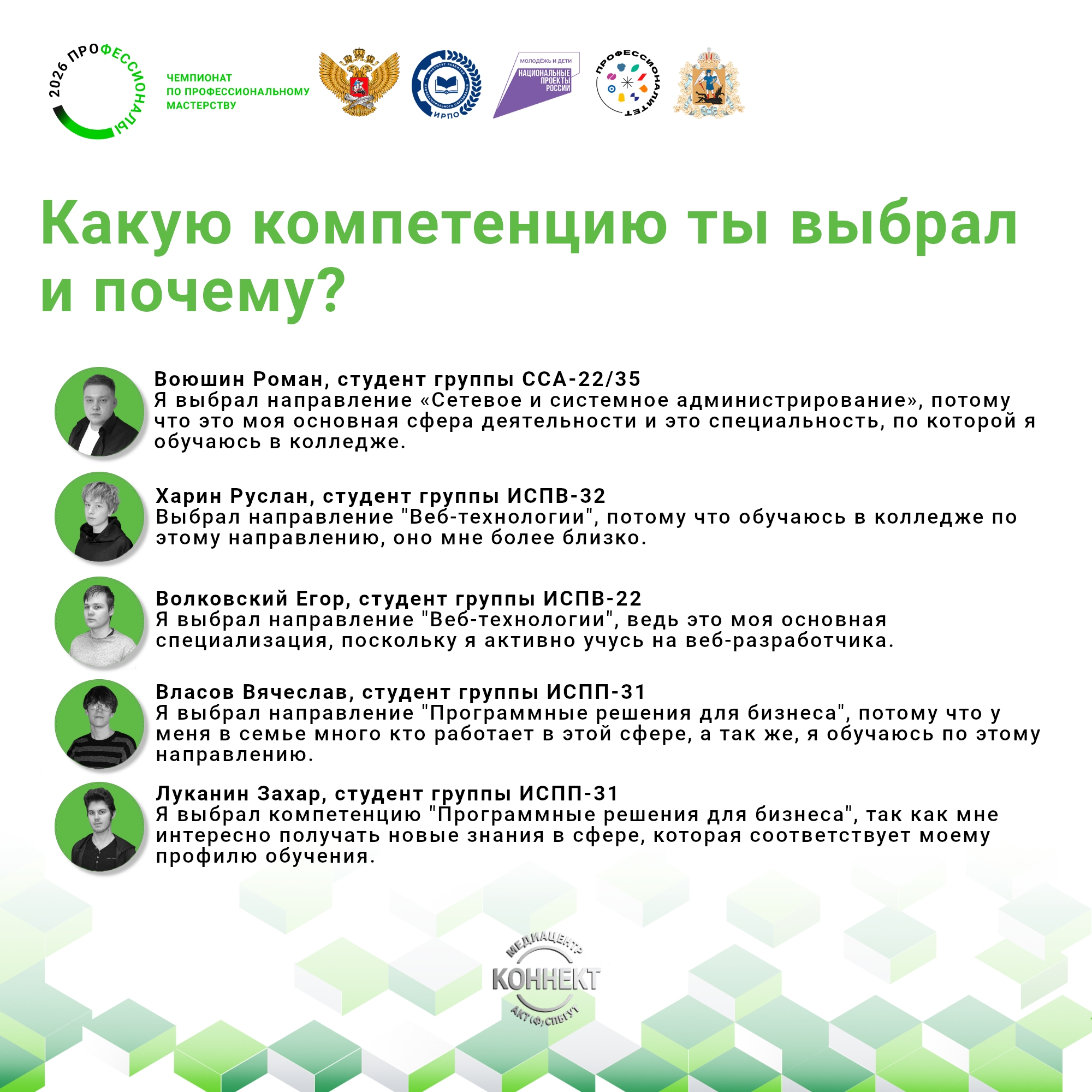 Знакомим вас с участниками и экспертами-наставниками от нашего колледжа на Чемпионате «Профессионалы»!
