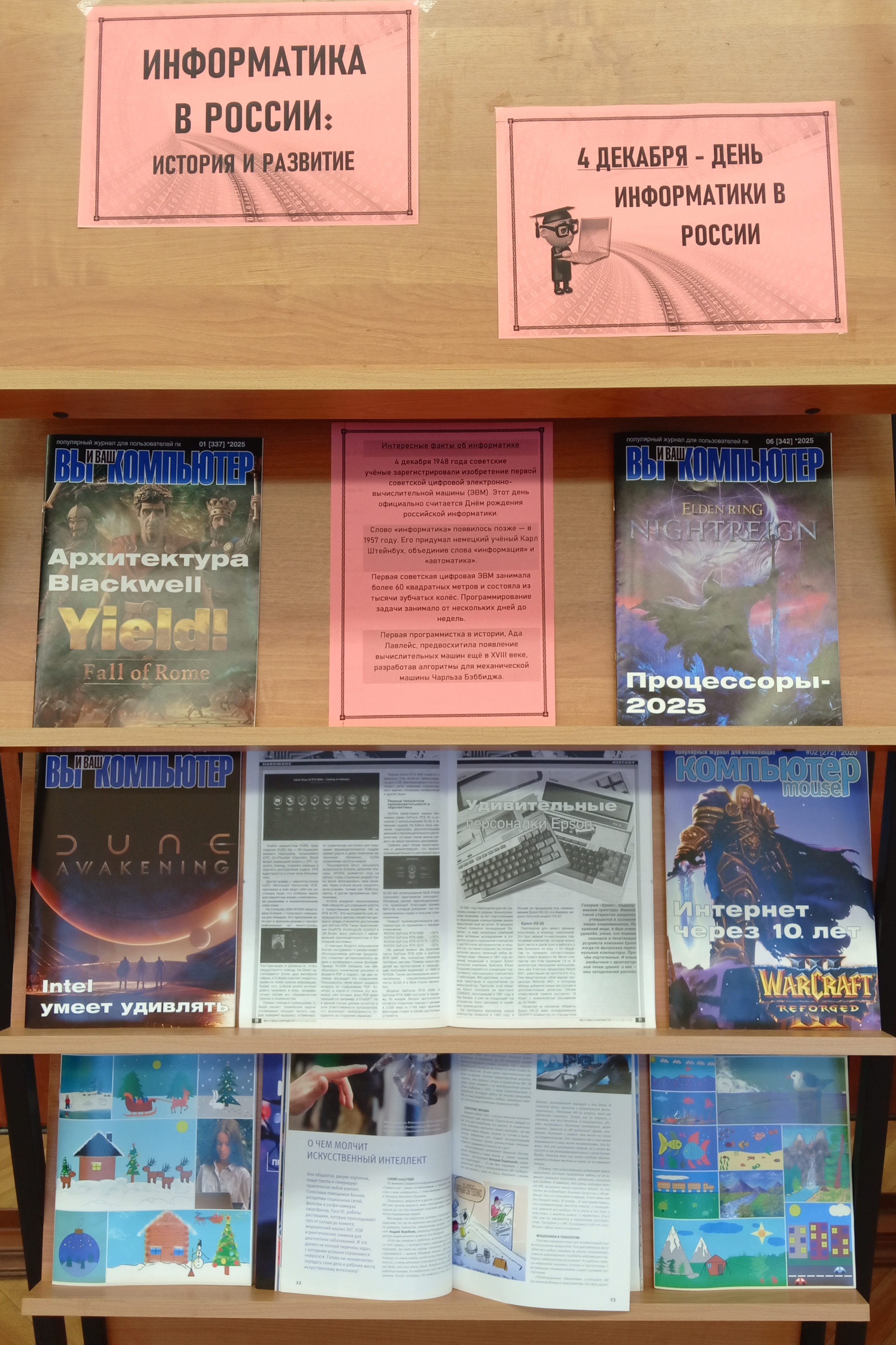 Журнальные статьи с выставки содержат информацию, посвящённую зарождению информатики и современному развитию информационных технологий.