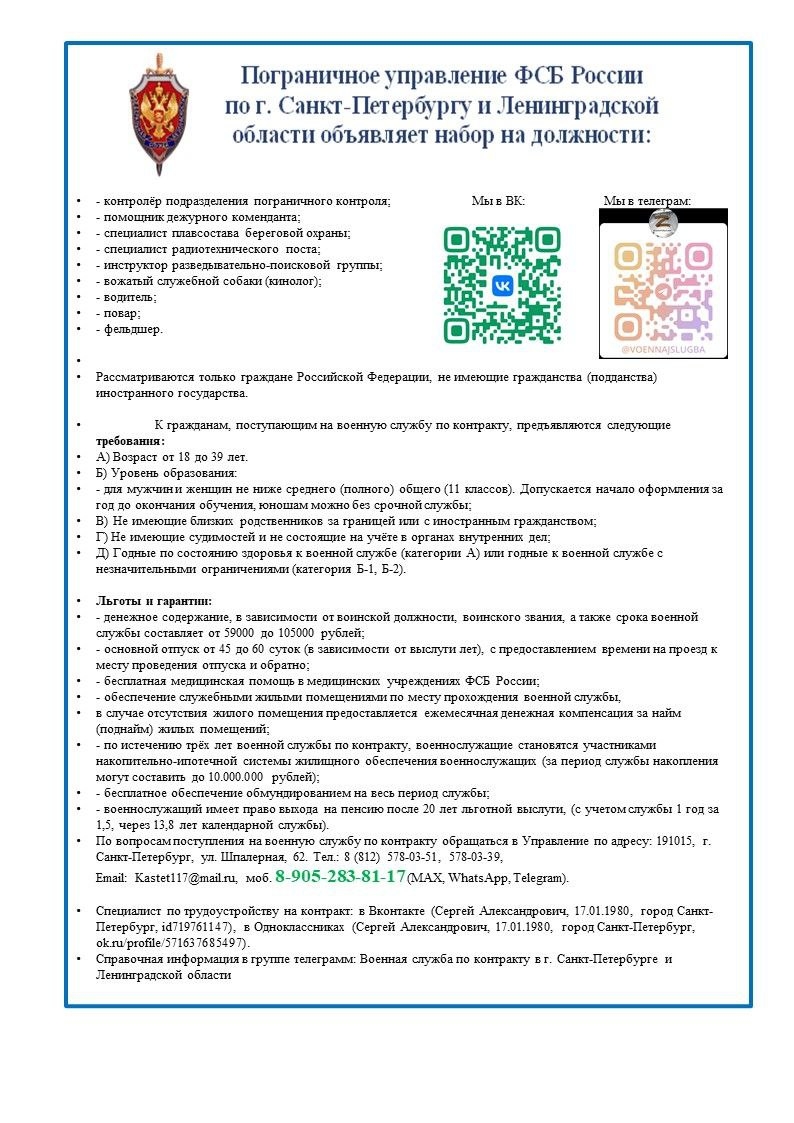 - Чёткий порядок и условия прохождения военной службы по контракту в органах государственной безопасности.