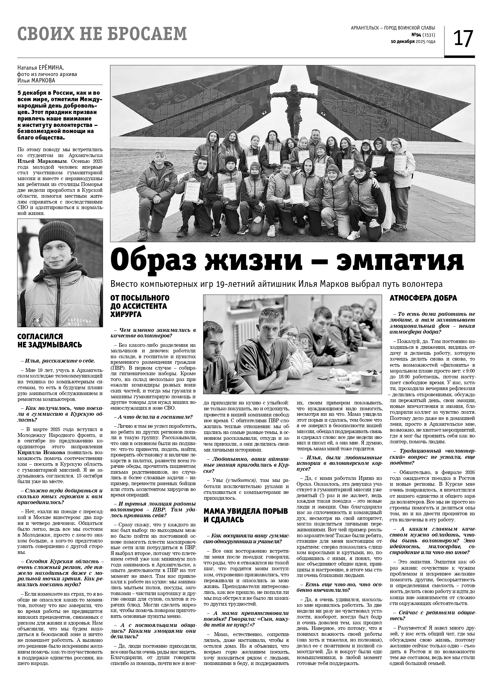 О своем опыте Илья рассказал корреспонденту газеты "Архангельск - Город воинской славы"