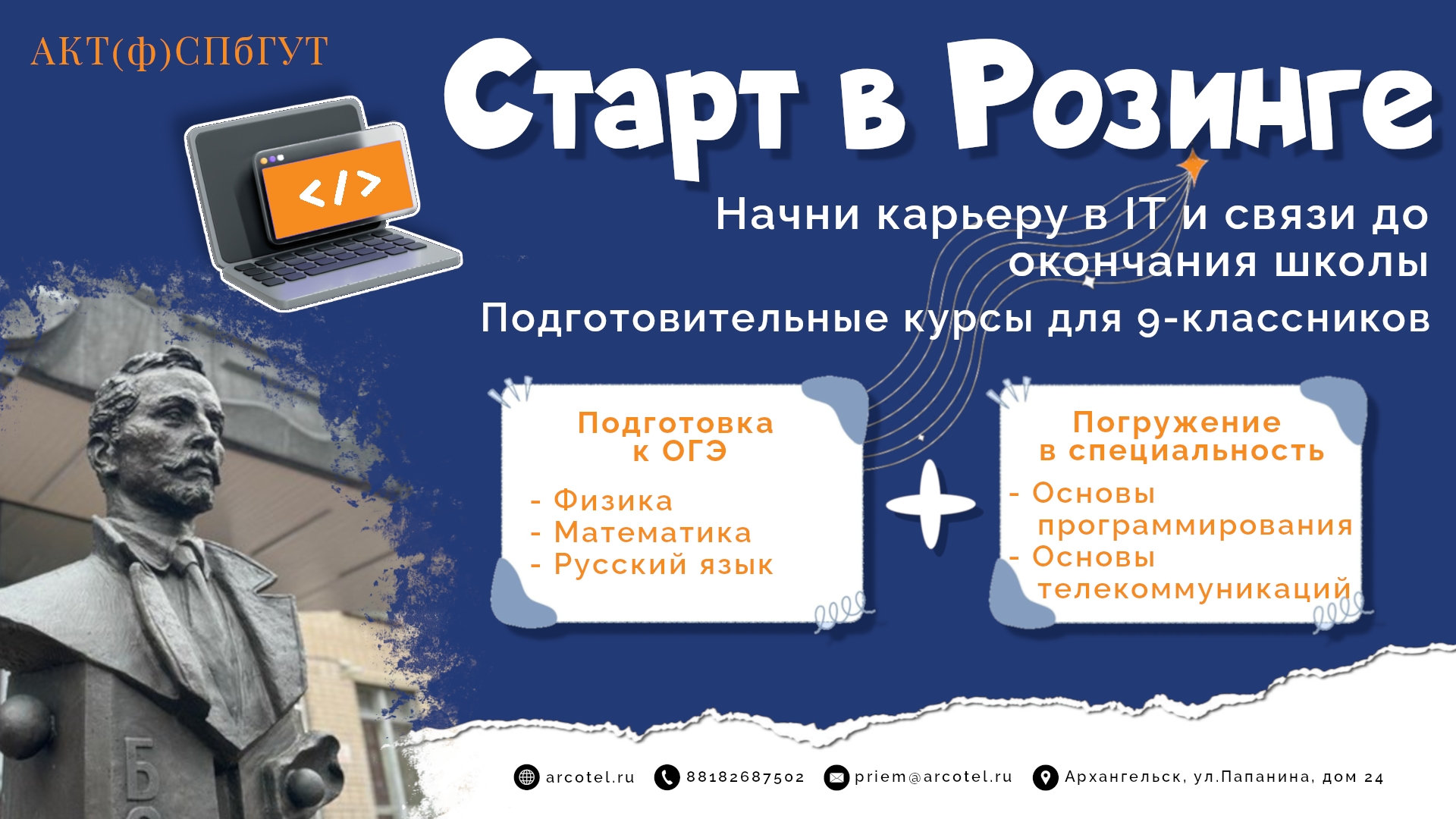 Архангельский колледж телекоммуникаций имени Б.Л. Розинга (филиал) СПбГУТ — единственное в регионе учреждение, которое готовит специалистов в сфере IT и телекоммуникаций по программам, разработанным вместе с ведущими компаниями отрасли.
