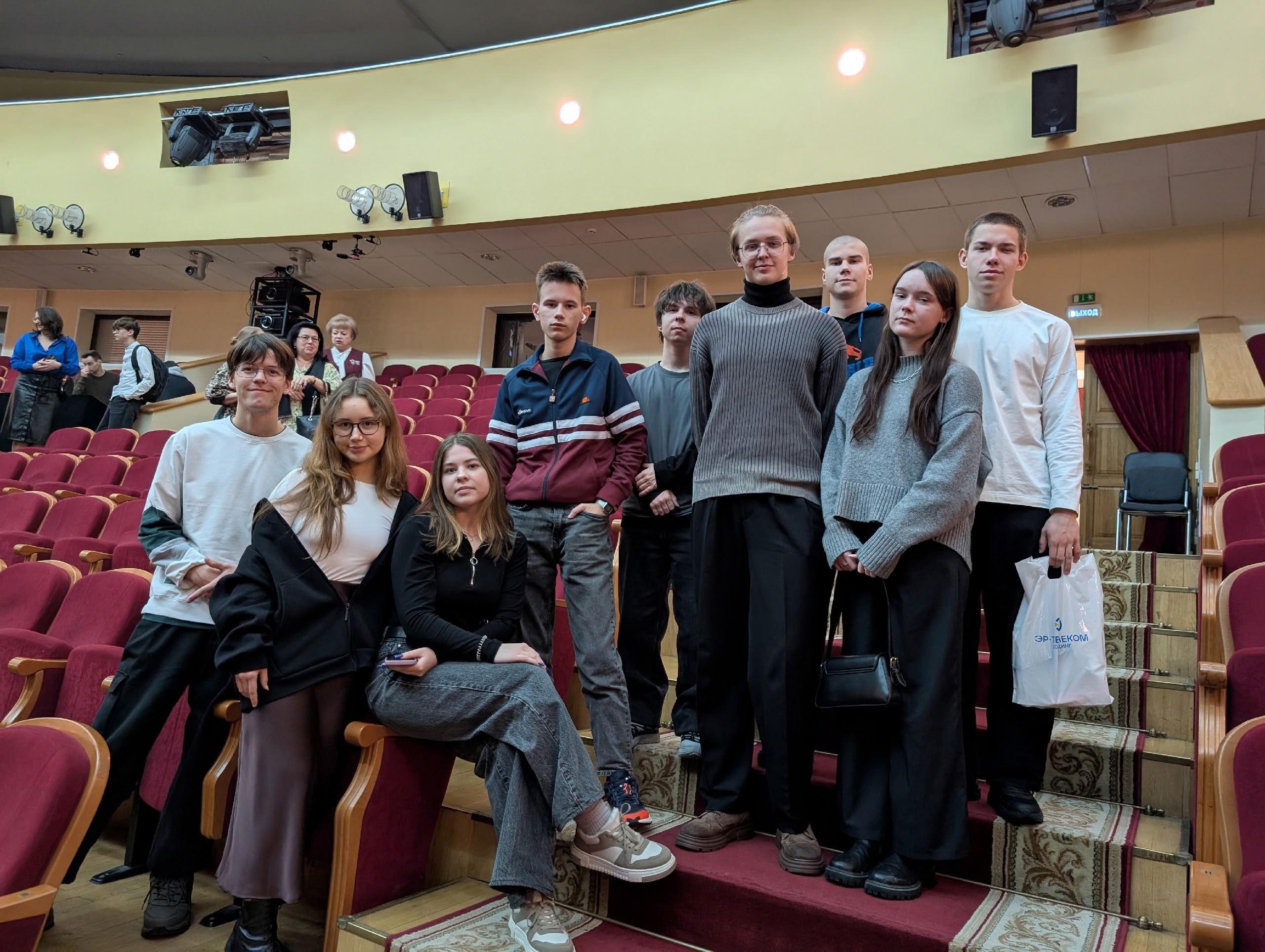 Студенты колледжа и преподаватель Угловская Дина Николаевна посетили мистическую трагикомедию «Парашютист» по мотивам одноименной повести Александра Селина. Постановку представил Национальный академический драматический театр имени Якуба Коласа (г. Витебск, Беларусь), который приехал на гастроли в Архангельск.