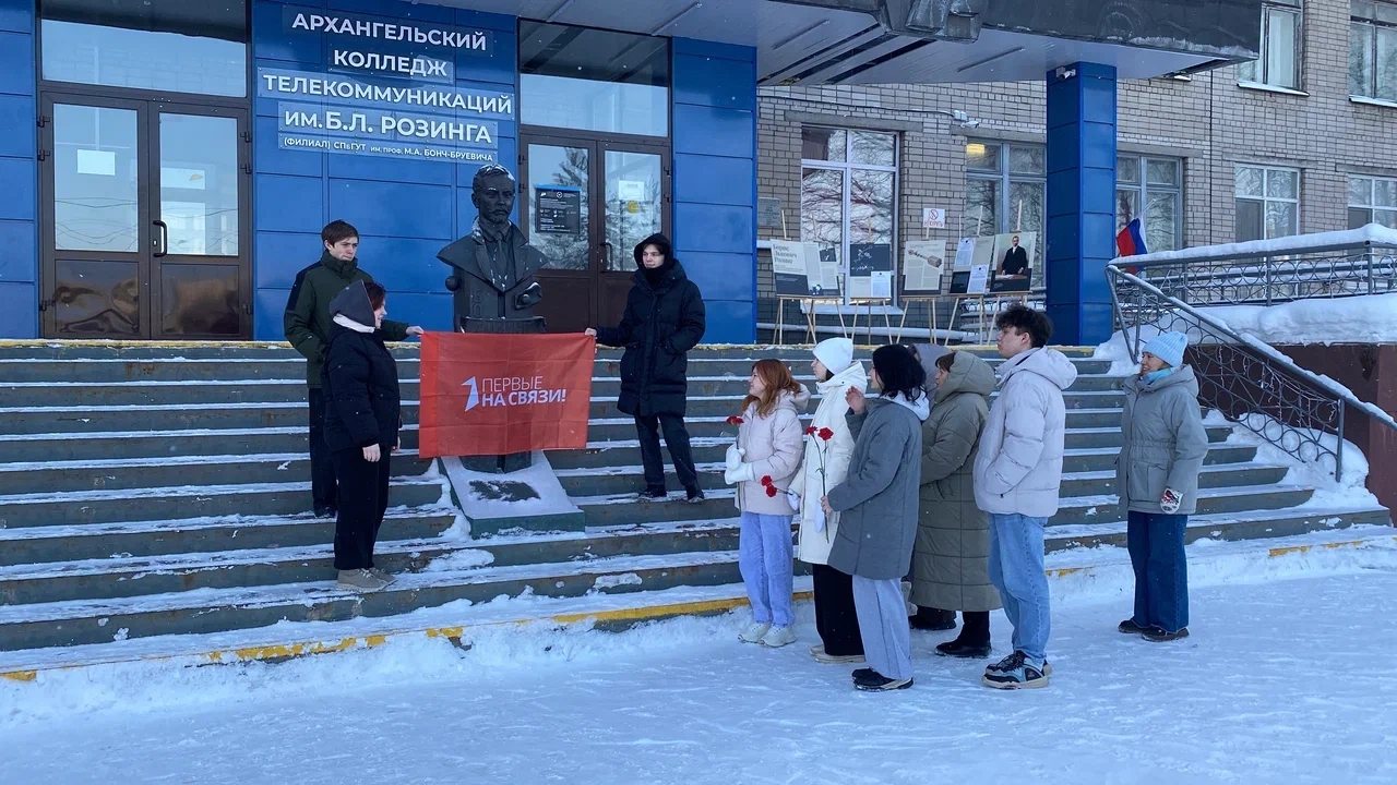Самая необычная экскурсия студентов Архангельского колледжа телекоммуникаций - экскурсия к памятнику Бориса Львовича Розинга, установленному на крыльце колледжа.