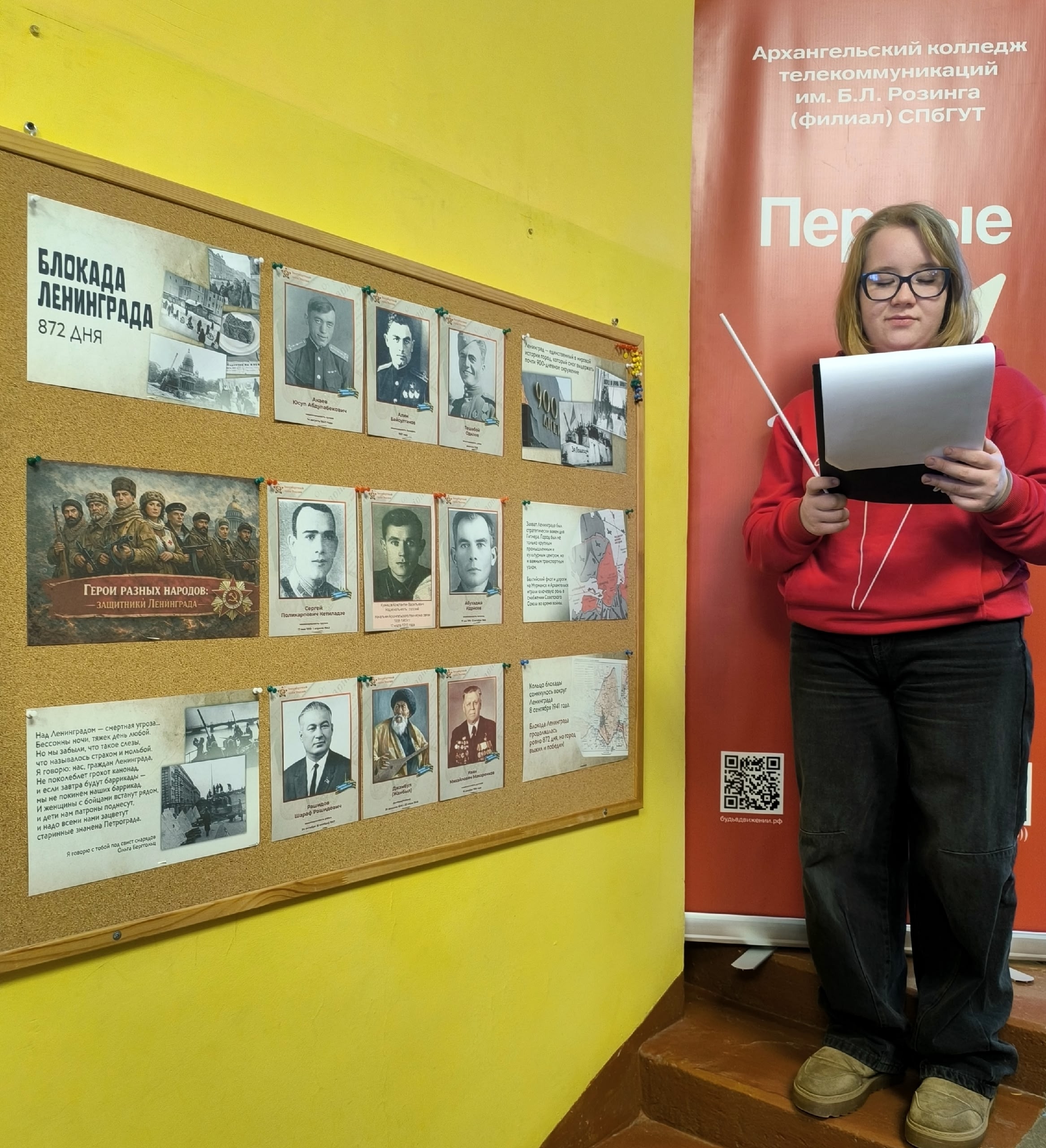 В рамках Всероссийской акции "Свеча памяти у Невы» активисты первичного отделения Движения Первых "ПЕРВЫЕ НА СВЯЗИ!" нашего колледжа изучили архивные и исторические документы, экспонаты музея колледжа и подготовили материал для галереи портретов «Герои разных народов: защитники Ленинграда». Её открытие и презентация состоялись 27 января. Познакомиться с материалами выставки может каждый — она открыта для студентов, преподавателей, гостей колледжа и всех, кто ценит историю своей страны.
